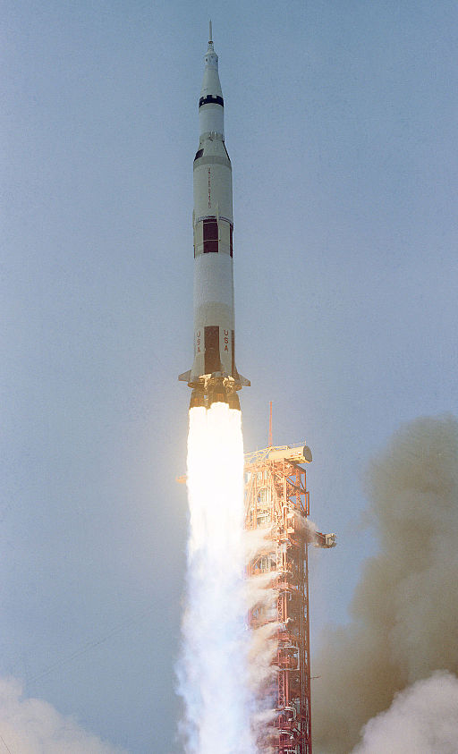 The Launch of Apollo 13 on April 11, 1970. At the time of publishing, the Saturn V rocket holds the record of being the only rocket to carry astronauts to the moon. Credit: NASA, Wikimedia Commons.
